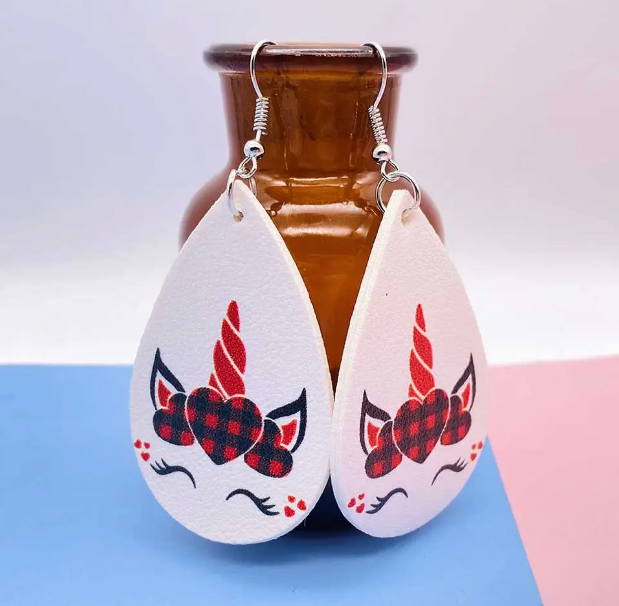 Faux Leather Earrings - Unicorn Heart Teardrops